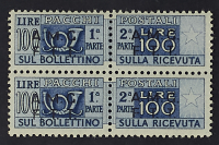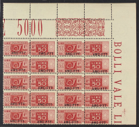 1954 - Nuova soprastampa 50 L. blocco di dieci esemplari angolo di foglio superiore destro