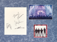 Quadro con cornice contenente due immagini ed un foglio autografato da tutti i membri della band
