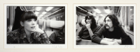 Jill Furmanovsky, Roger Waters and Nick Mason su un treno direzione Edinburgo durante il tour dei Pink Floyd "Dark Side of The Moon"