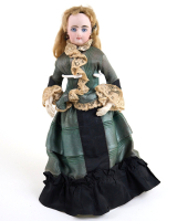 attribuibile a F. Gaultier, corpo in pelle di capra, testa di porcellana fine con pittura fine, bocca chiusa, vecchia parrucca, vestiti nuovi cuciti in tessuto vecchio.