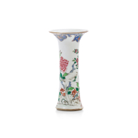 Porcellana dipinta a smalti policromi della ‘Famiglia Rosa’ con decoro floreale.