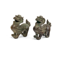 Bronzo, i due animali mitologici raffigurati in stile arcaico.
