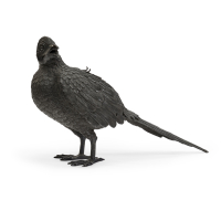 Peltro, sezione ottagonale, manico e beccuccio modellati, il coperchio con finale a leone buddhista, sul corpo caratteri incisi.