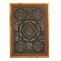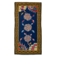 Motivo 'classico' della produzione tibetana di tappeti di tipo khaden, usati nelle case e nelle tende, e caratterizzati da misure standard (L. Larsson jr, Carpets from China Xinjiang &