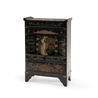 Legno laccato e dorato, modellata come libro, il lato superiore con decoro di oggetti di buon auspicio e monete in metallo.