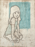 Firmato al recto in basso a sinistra e destra, al verso firmato titolato ed etichetta/scheda della Galleria Open Art, Prato.