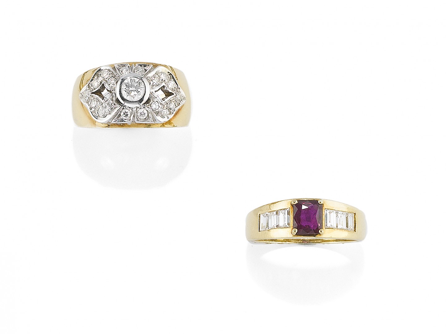 LOTTO DI DUE ANELLI IN RUBINO E DIAMANTI