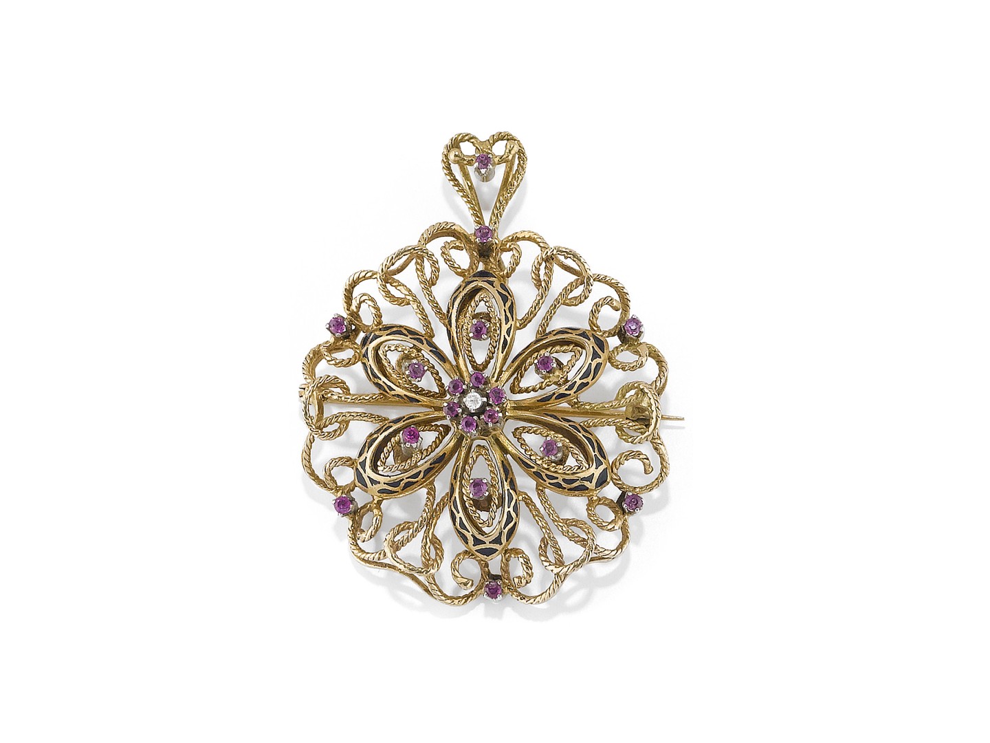 PENDENTE-SPILLA IN RUBINI E SMALTO