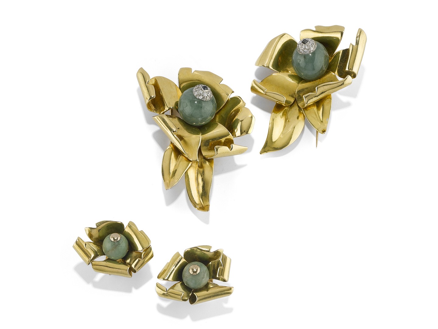 DEMI-PARURE IN SFERE VERDI E DIAMANTI