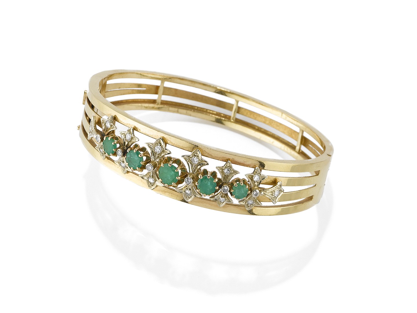 BRACCIALE RIGIDO IN SMERALDI E DIAMANTI