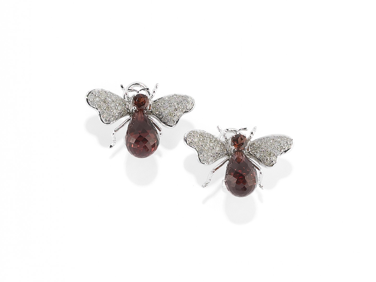 PAIO DI ORECCHINI A CLIP IN DIAMANTI E GRANATI