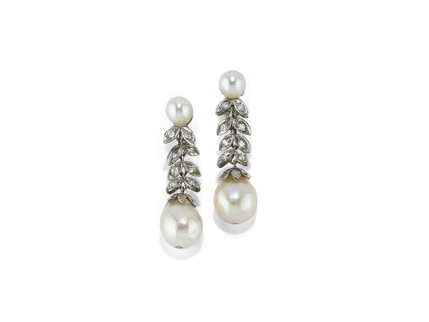 PAIO DI ORECCHINI PENDENTI IN DIAMANTI E PERLE