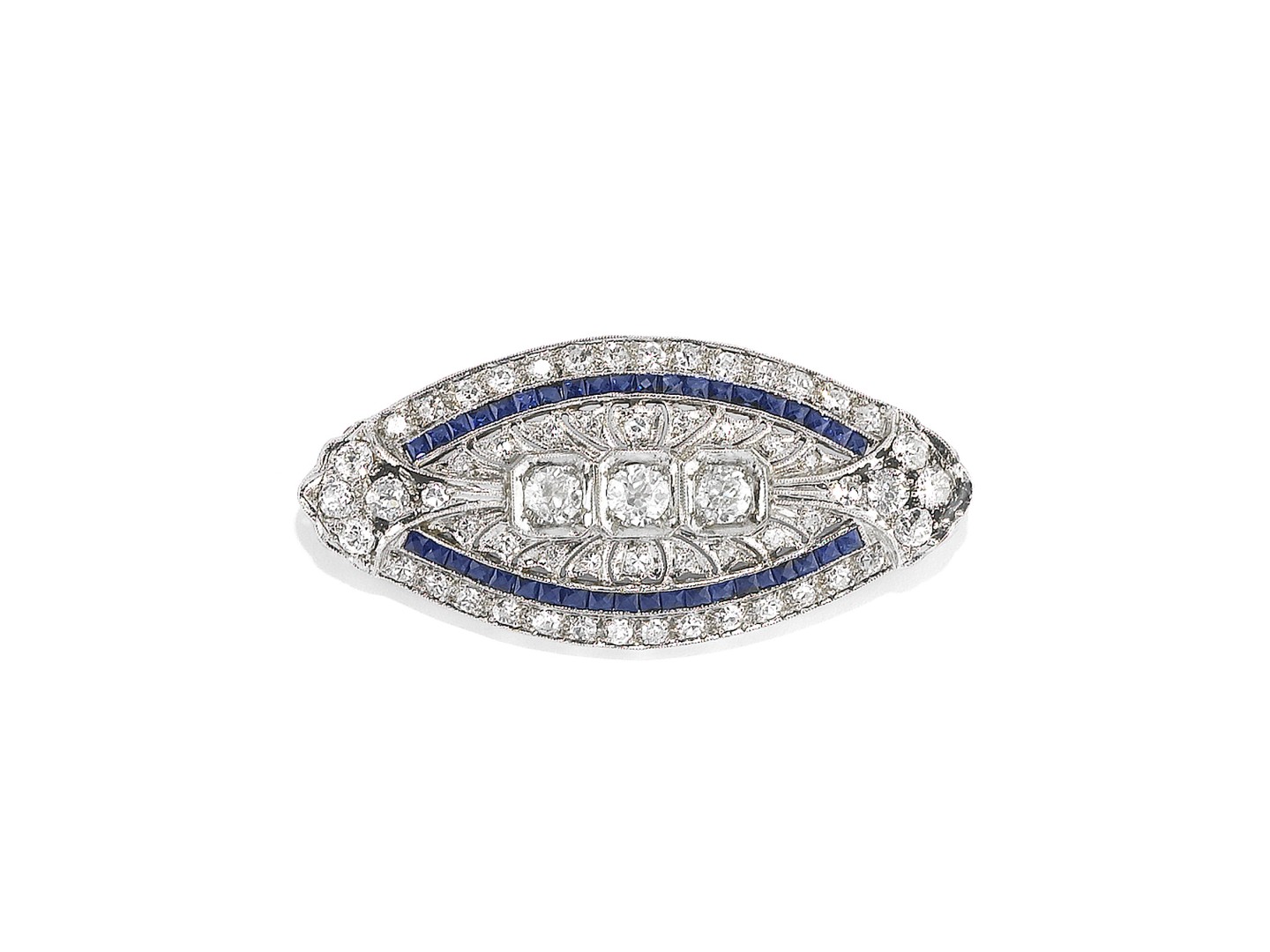 PENDENTE-SPILLA IN DIAMANTI E ZAFFIRI