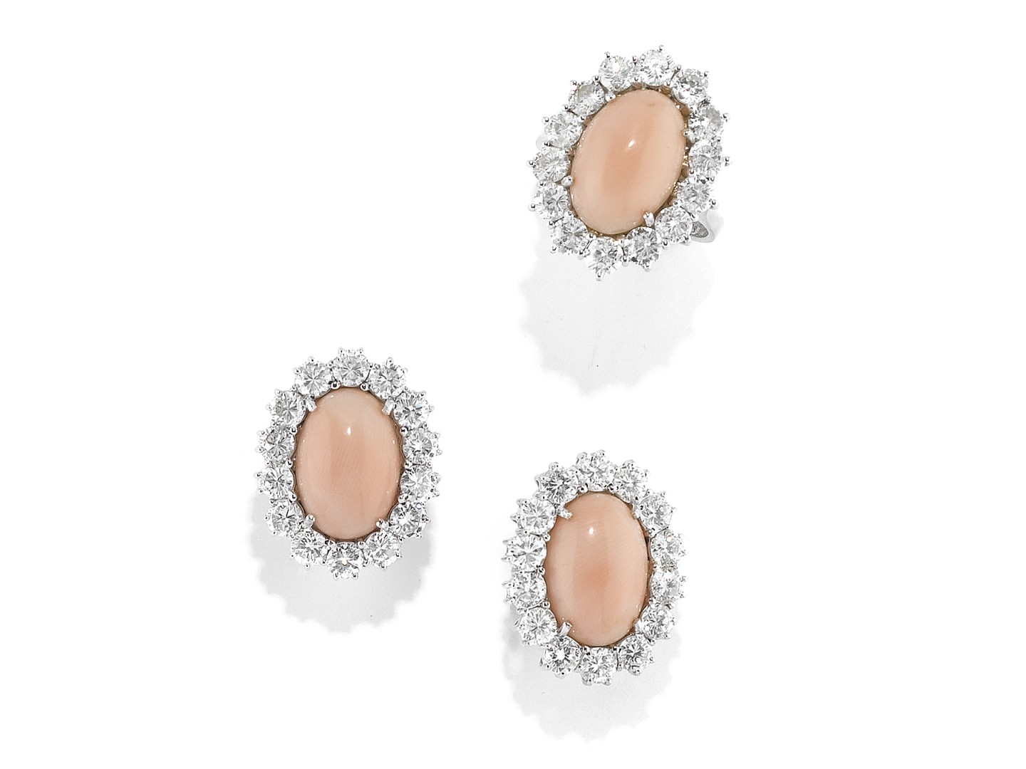 DEMI-PARURE IN DIAMANTI E CORALLI ROSA