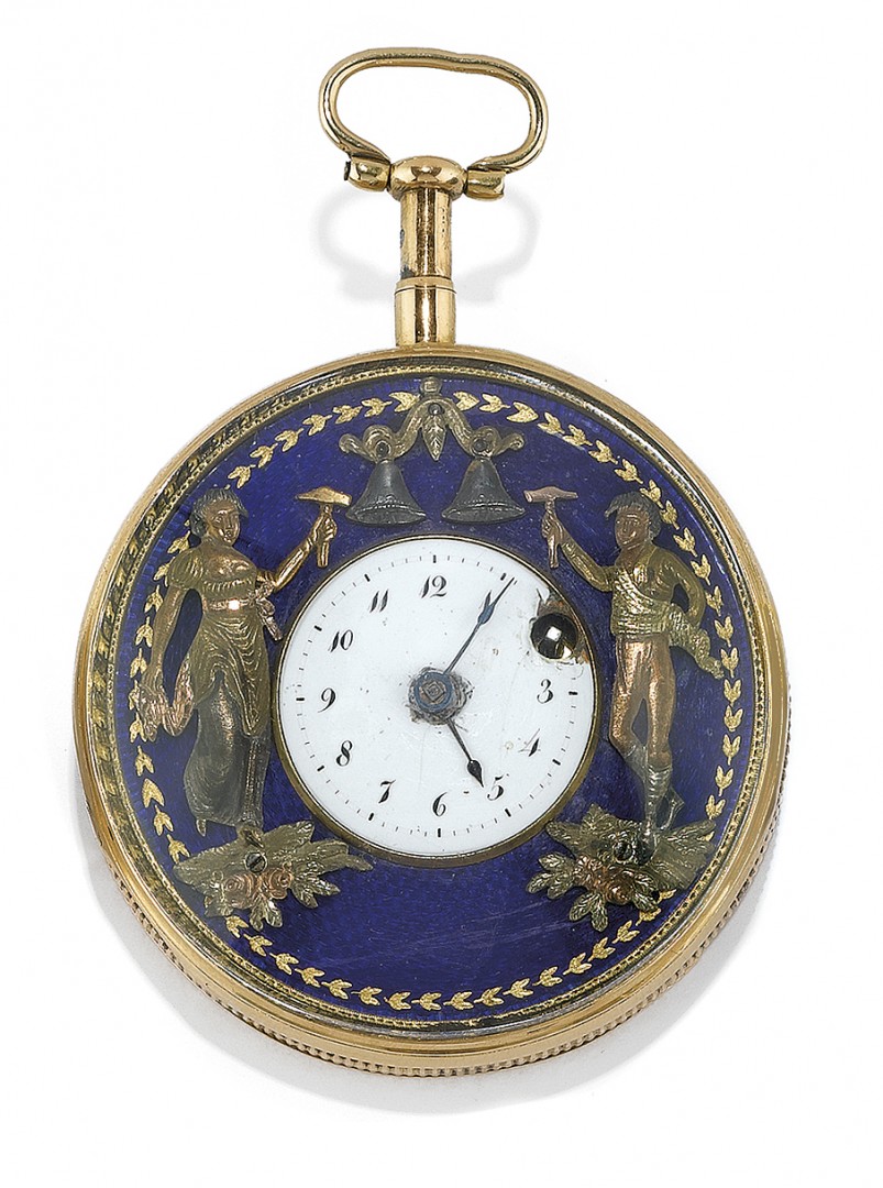 OROLOGIO DA TASCA A CHIAVETTA CON RIPETIZIONE A QUARTI E AUTOMI
