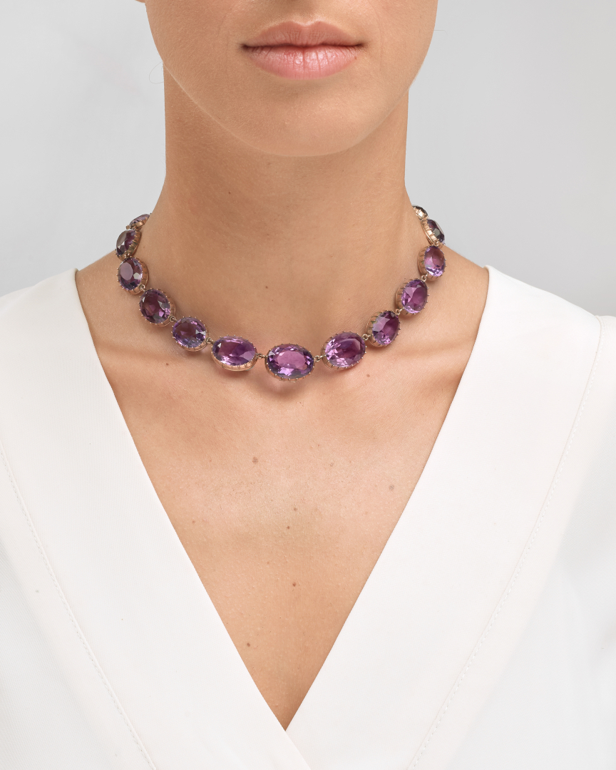 inglese d'epoca edoardiana, realizzata a castoni di oro basso e ametiste.