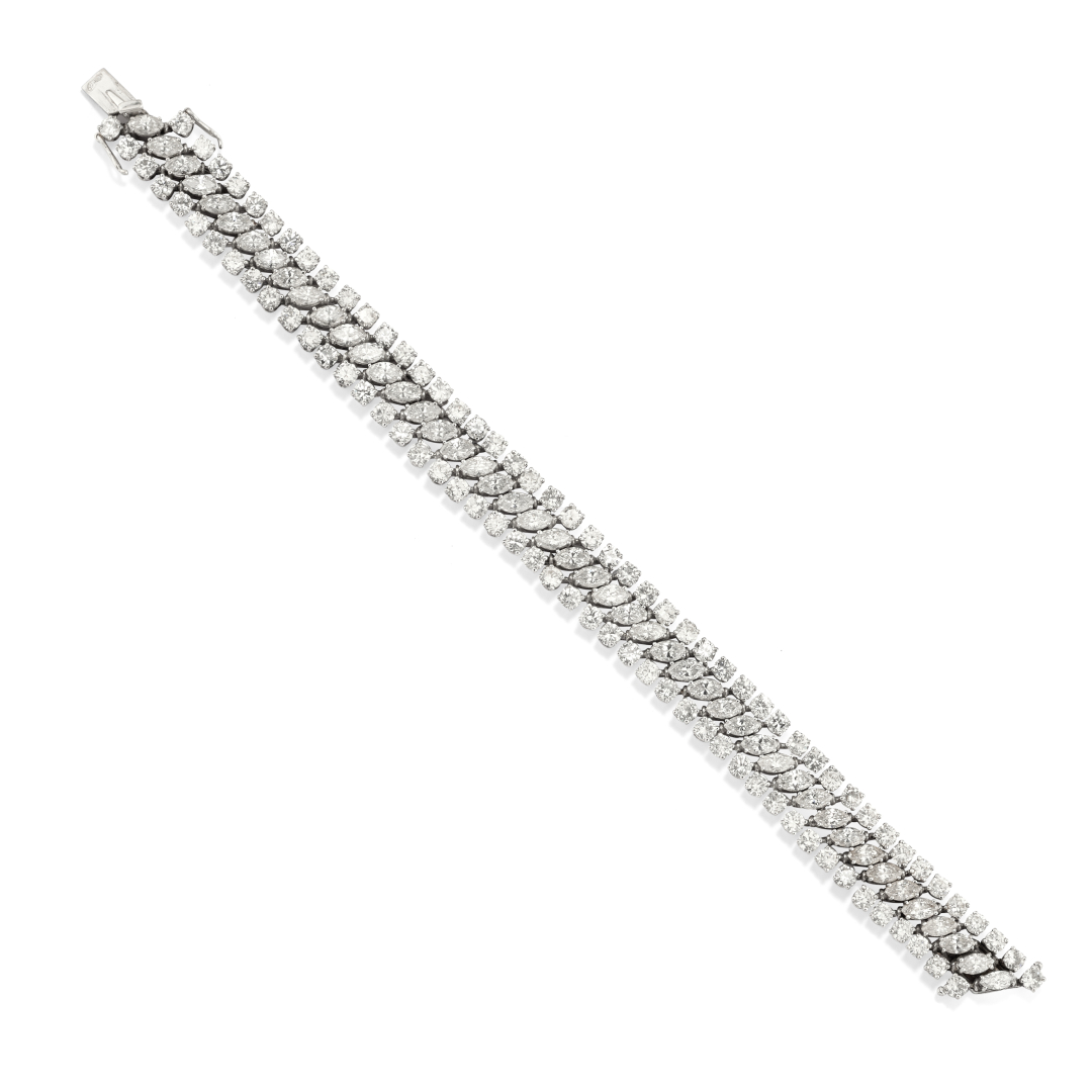 in oro bianco a tre fili flessibili di diamanti taglio marquise per complessivi ct 7,00 ca e diamanti taglio brillante rotondo per complessi ct 9,00 ca.