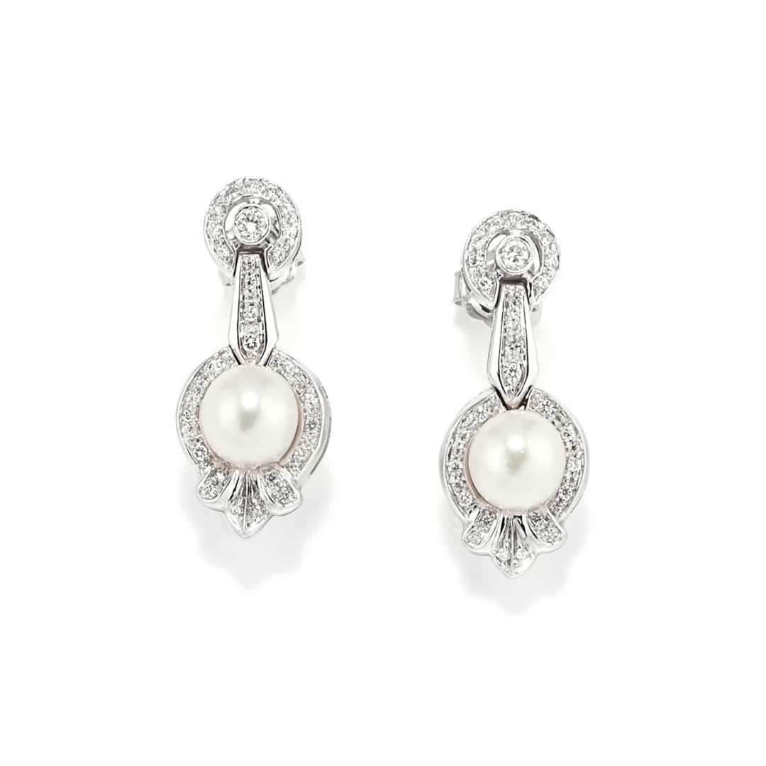 PAIO DI ORECCHINI PENDENTI IN PERLA E DIAMANTI