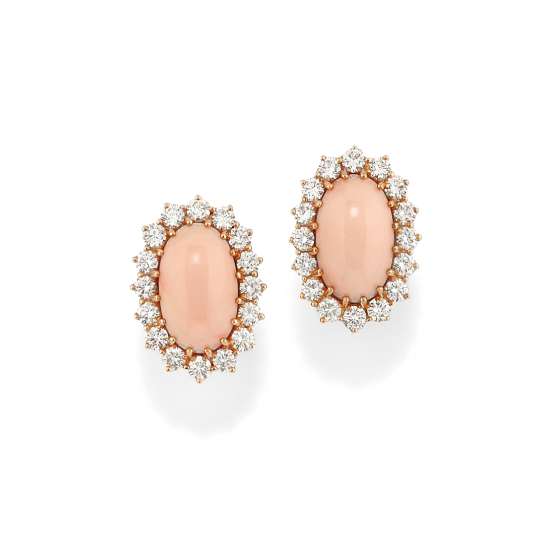 PAIO DI ORECCHINI IN CORALLO E DIAMANTI