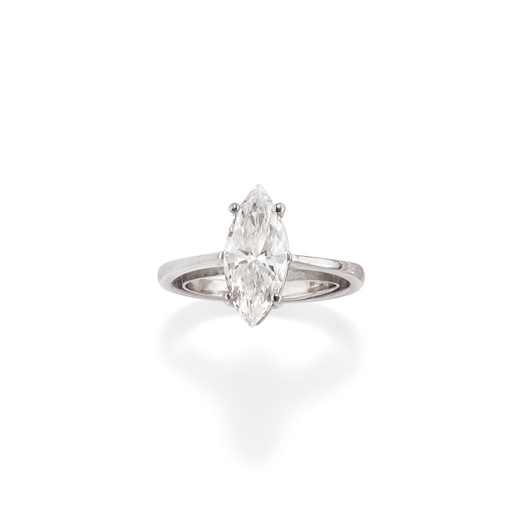 in oro bianco con diamante taglio marquise di ct 2,53 ca.