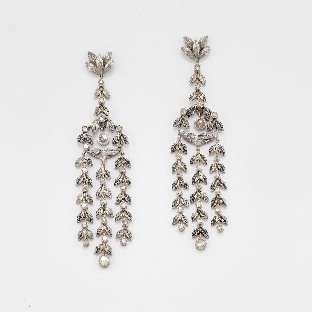 PAIO DI ORECCHINI ANTICHI PENDENTI IN DIAMANTI