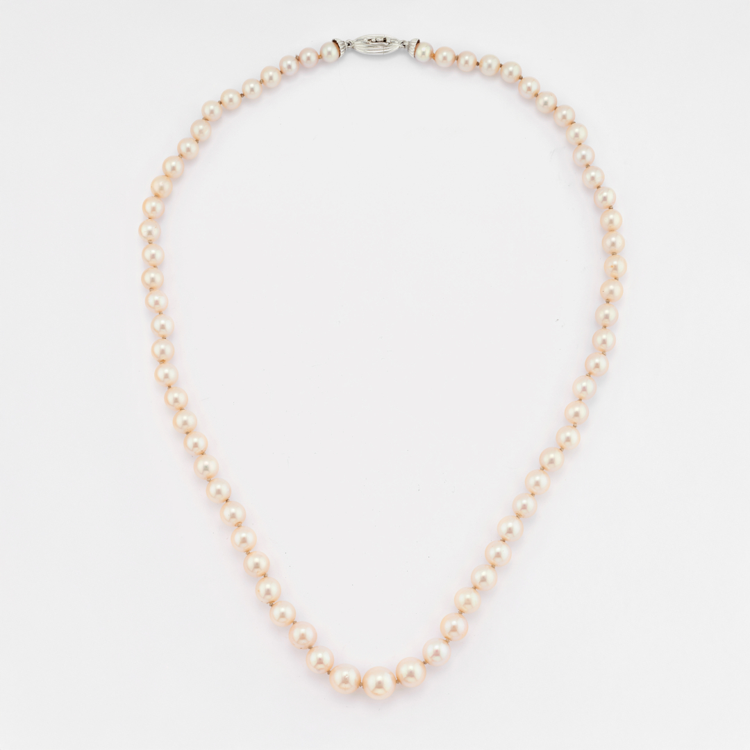 da mm 5 a mm 9 circa tenute insieme da una chiusura a caramella in oro bianco.