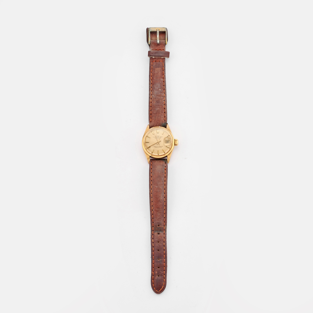 in oro giallo, modello Oyster Perpetual Datejust con cinturino in pelle.