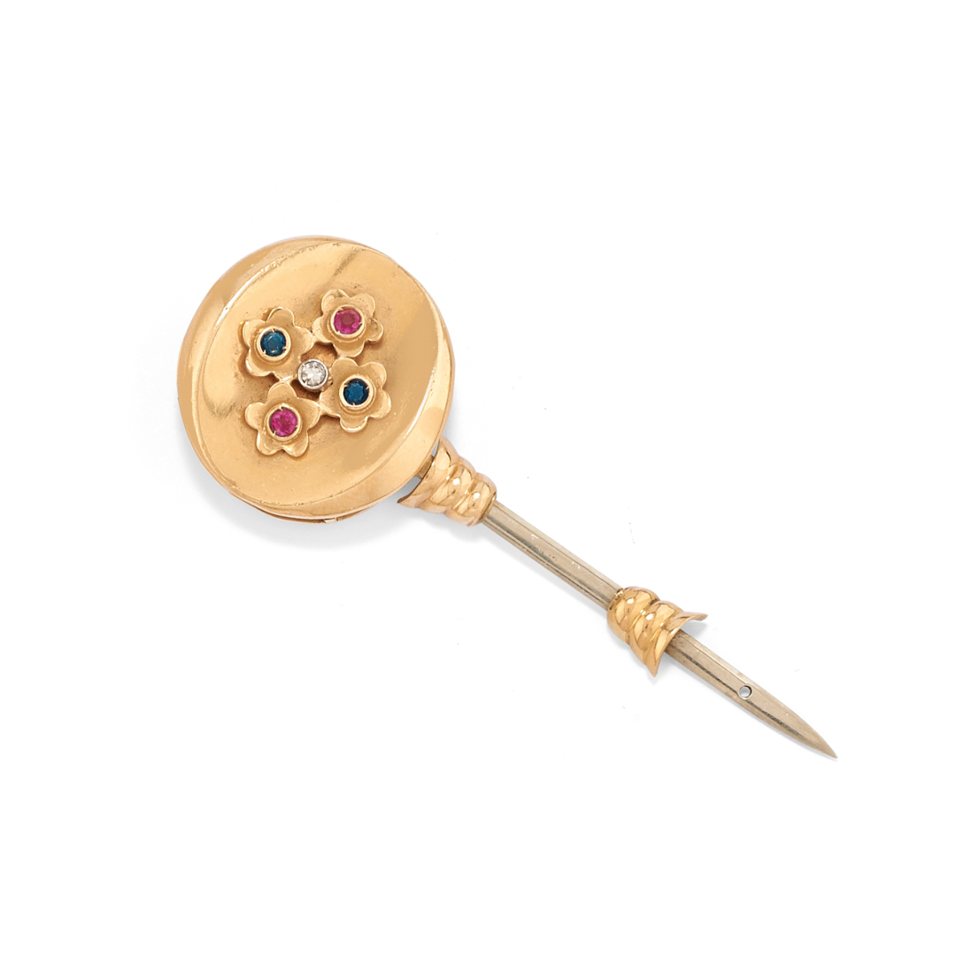 con corindoni, pietre colorate e diamante taglio rotondo.