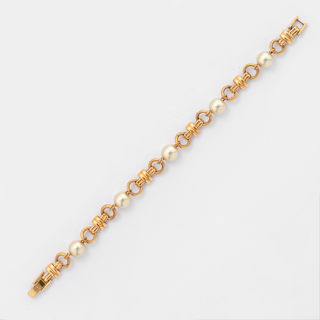 in oro giallo e realizzato a doppia maglia tonda intervallata da perle golden.