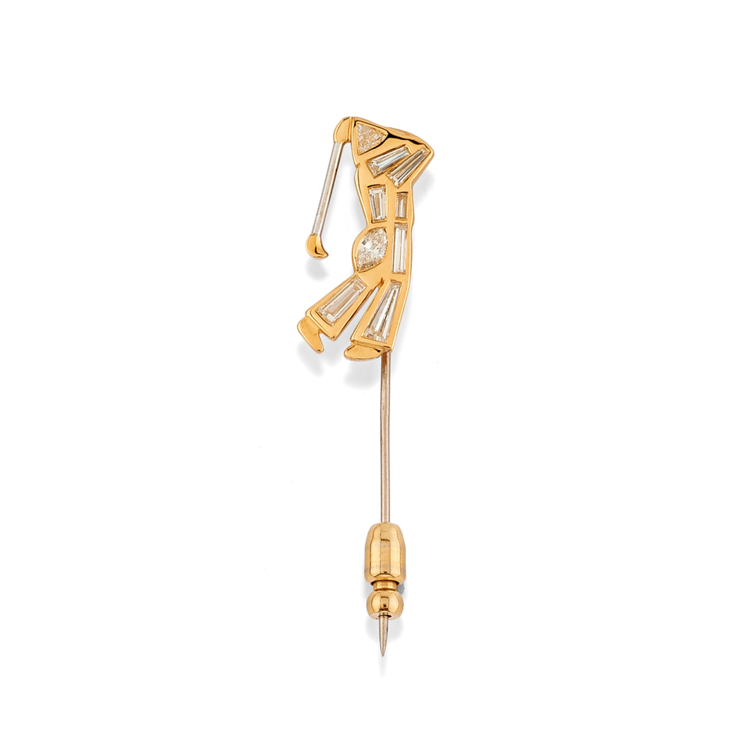 in oro giallo impreziosita da diamanti di tagli diversi, raffigurante giocatore di golf.
