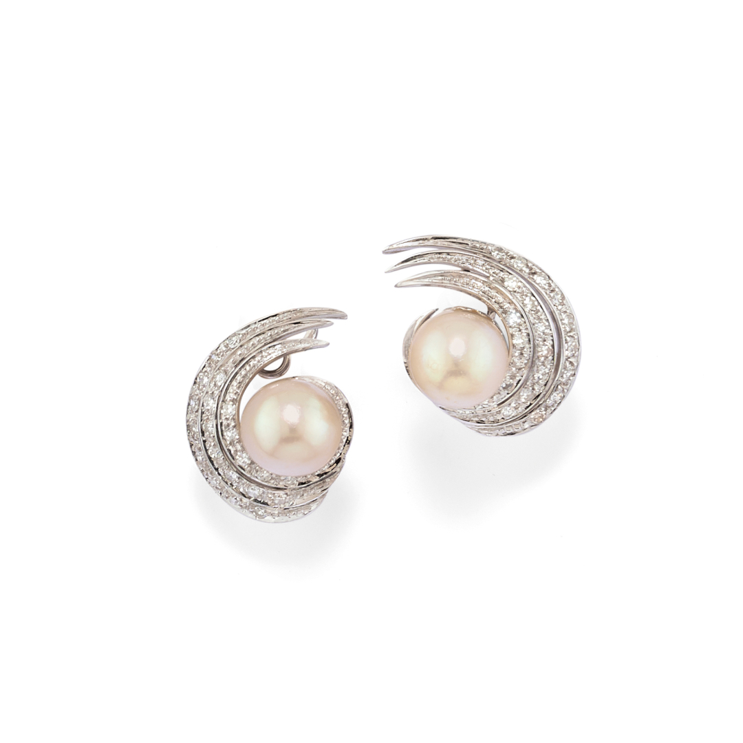 PAIO DI ORECCHINI A CLIP IN DIAMANTI E PERLA
