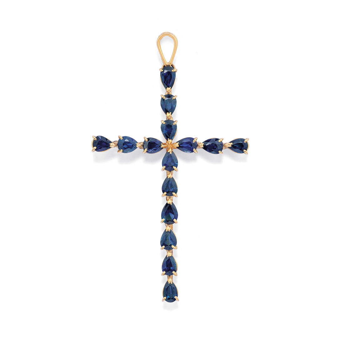 in oro giallo e con zaffiri taglio goccia per complessivi ct. 6,00 ca.