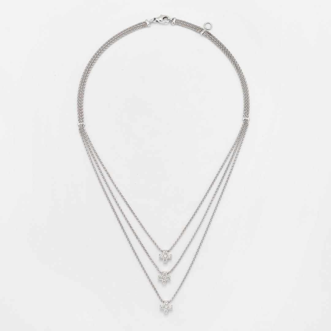 in oro bianco terminanti ognuno con una croce a base quadrata in diamanti per complessivi ct. 0,75 ca.