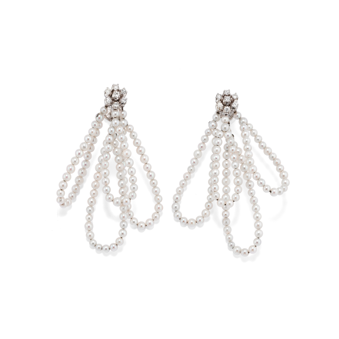 PAIO DI ORECCHINI PENDENTI IN PERLE