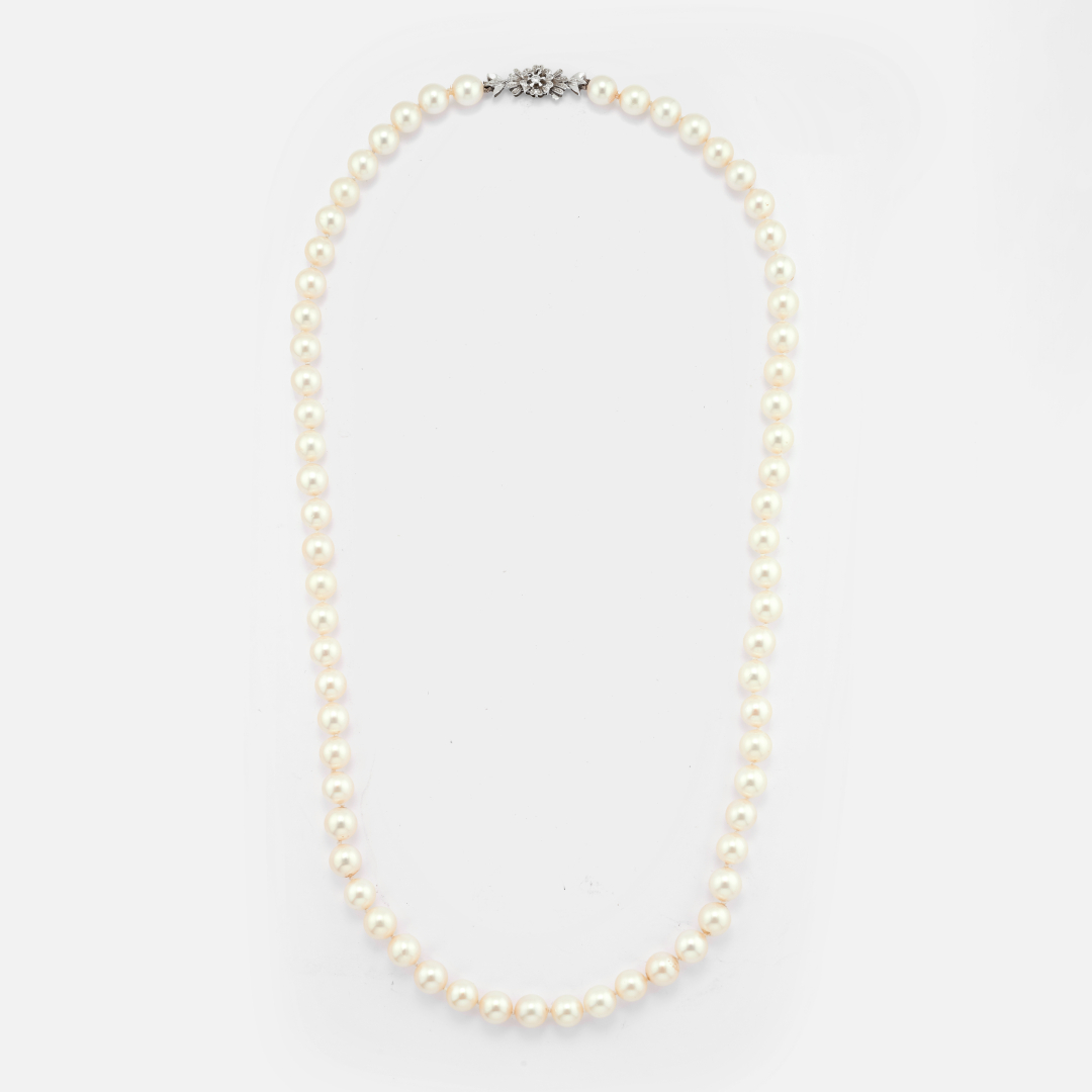 coltivate da mm 8 con chiusura in oro bianco a motivo floreale.