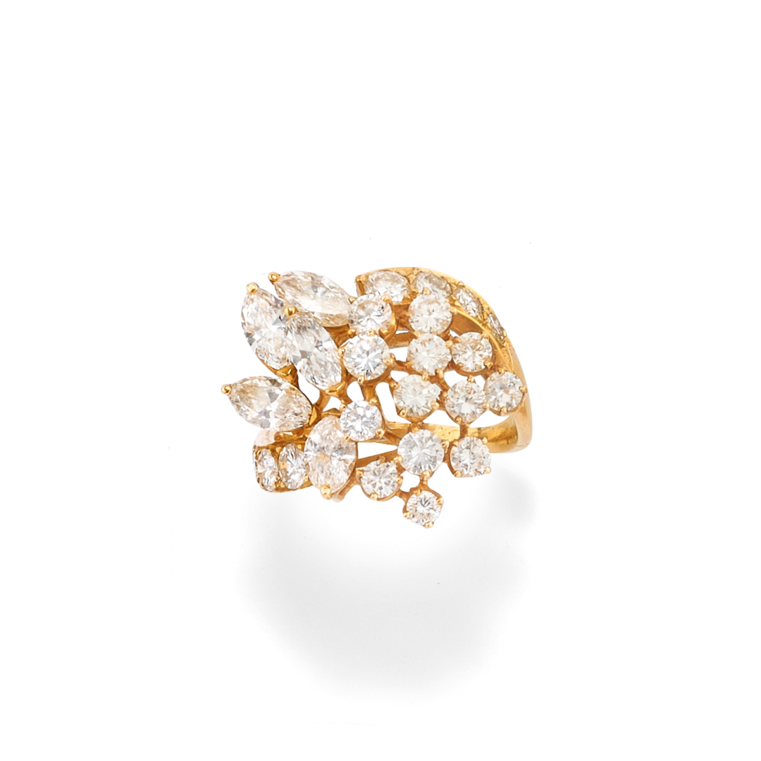 in oro giallo a motivo floreale e diamanti taglio brillante rotondo e taglio marquise per complessivi ct 3,00 ca.