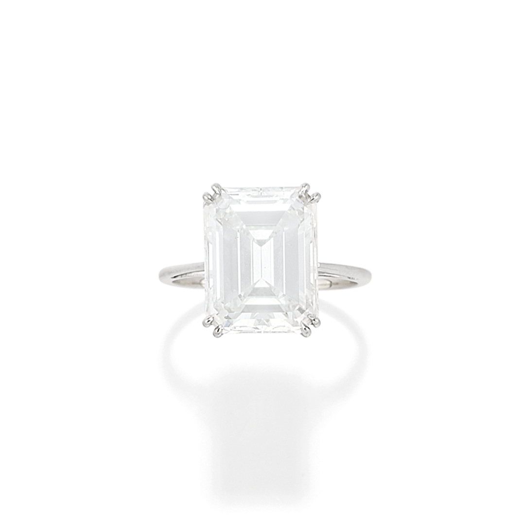 in oro bianco con diamante taglio smeraldo di ct 7,02 ca.
