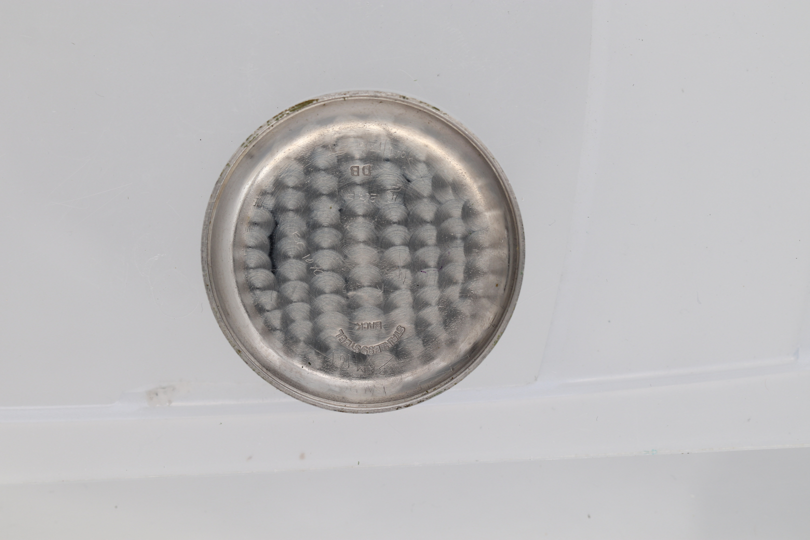 Cassa: firmata, n. 735865, cromata, fondello a scatto in acciaio.