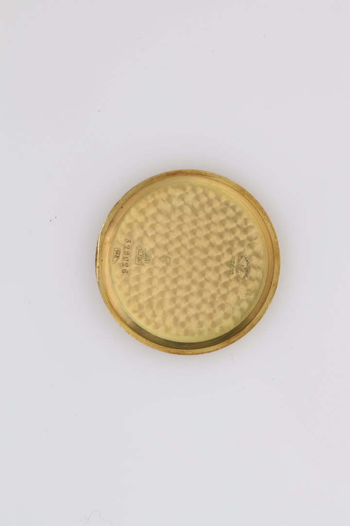 Cassa: firmata, n. 329026, in oro 18K, fondello a scatto.