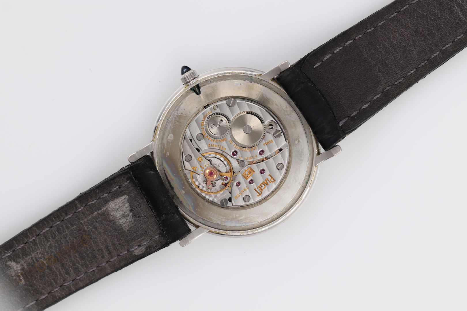 Cassa: firmata, n. 334049, in oro bianco 18K, fondello a scatto.