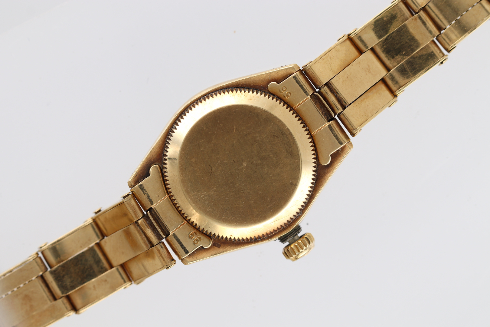 Cassa: firmata, n. 1686231, in oro 18K, fondello a vite ref. 6619. Quadrante: firmato, argentée, indici applicati, secondi al centro. Movimento: firmato, automatico calibro 1161, n. 93650, 26 rubini, regolato per temperatura e cinque posizioni. Bracciale/Cinturino: firmato, in oro 18K, Oyster, rivettato elasticizzato, deployante marcata 3.67, finali 66.
