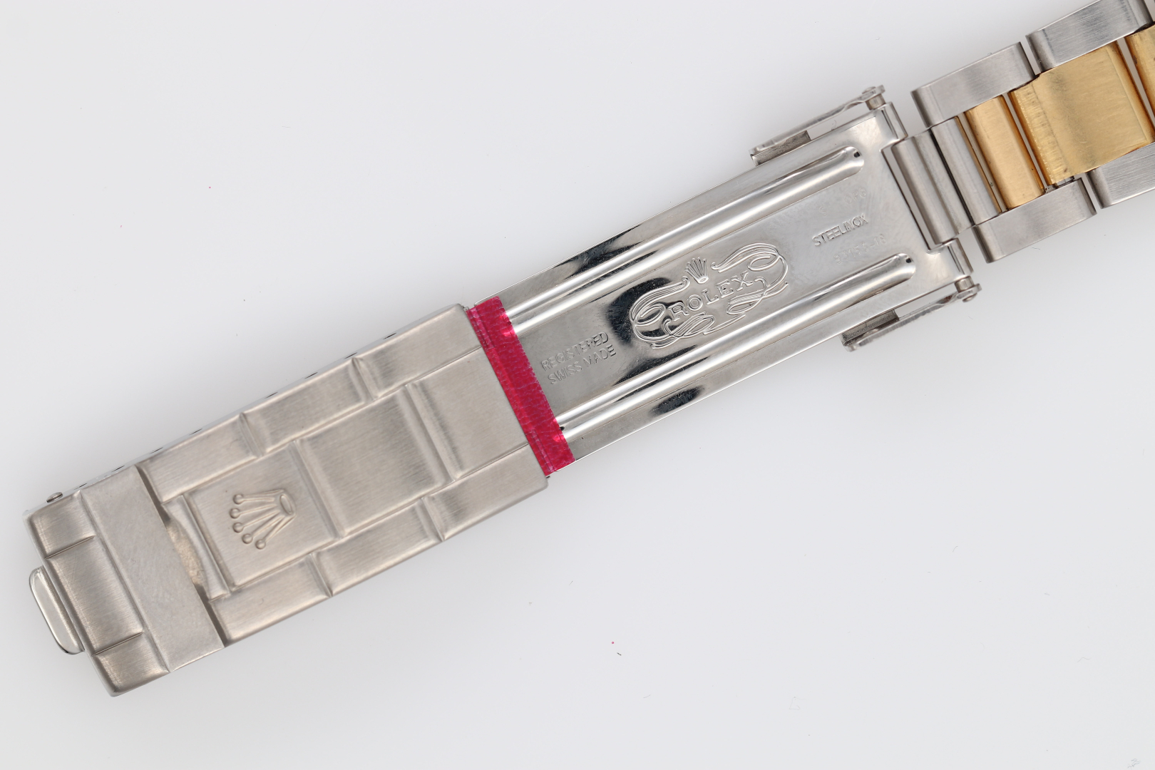 Movimento: firmato, automatico calibro 3135, n. 7257783, 31 rubini, regolato per temperatura e cinque posizioni. Bracciale/Cinturino: firmato, Oyster ref. 93153, in acciaio e oro, finali 401B, chiusura deployante OP8.