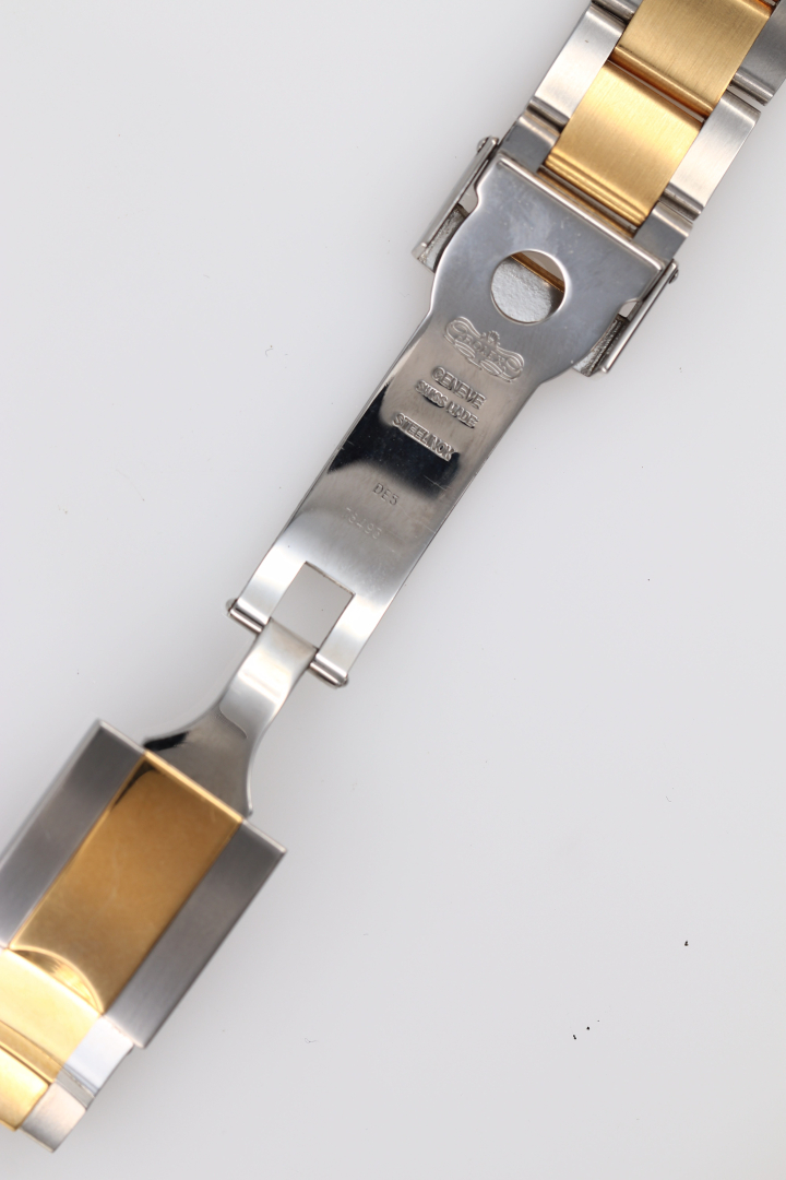 Bracciale/Cinturino: firmato, Oyster ref. 78493, in acciaio e oro, finali AB, chiusura deployante DE3.
