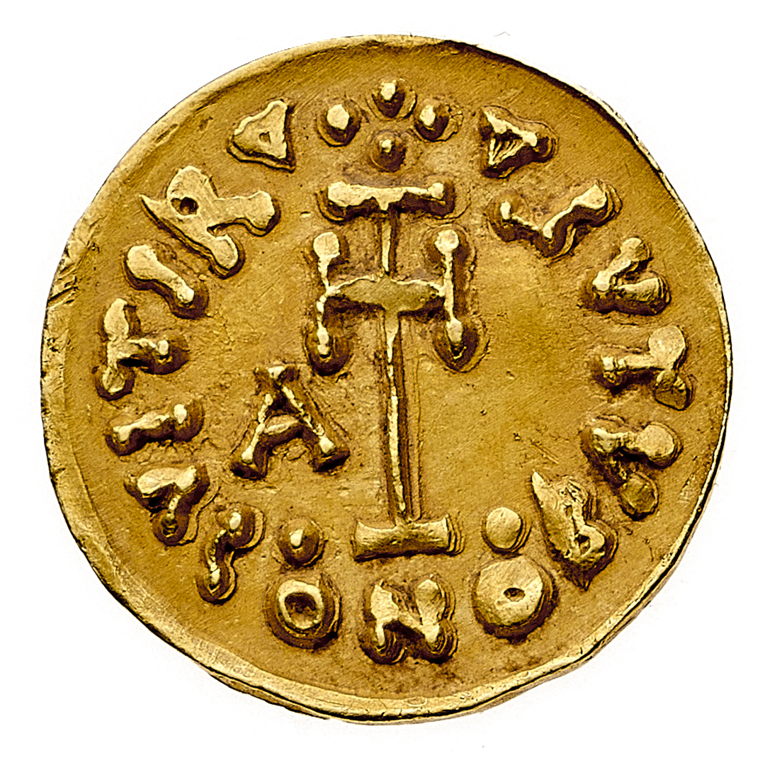 Arichi II Duca (758-774) - Tremisse - Diritto: busto diademato e drappeggiato di Arichi II di fronte con croce nalla mano destra e volumen nella sinistra - Rovescio: croce potenziata su un basamento; a sinistra, nel campo, la lettera A - gr. 1,32 - Rara - SPL - Corredata da cartellino di antica collezione