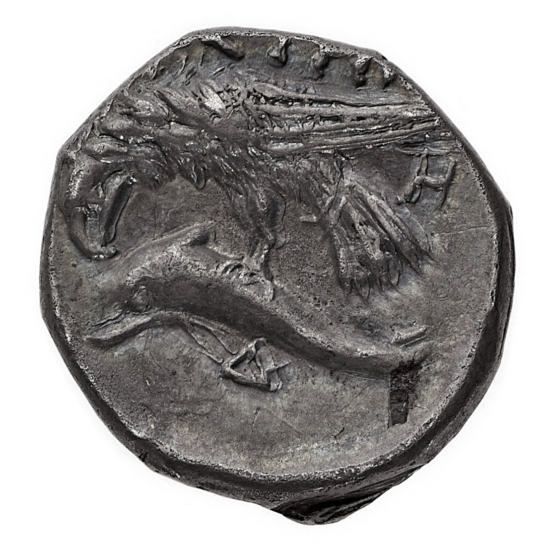 Istros - Dracma databile al periodo 340-313 a.C. - Diritto: due volti affiancati di cui uno invertito - Rovescio: aquila in volo verso sinistra con delfino fra gli artigli - gr. 5,72 - Patina di medagliere, SPL