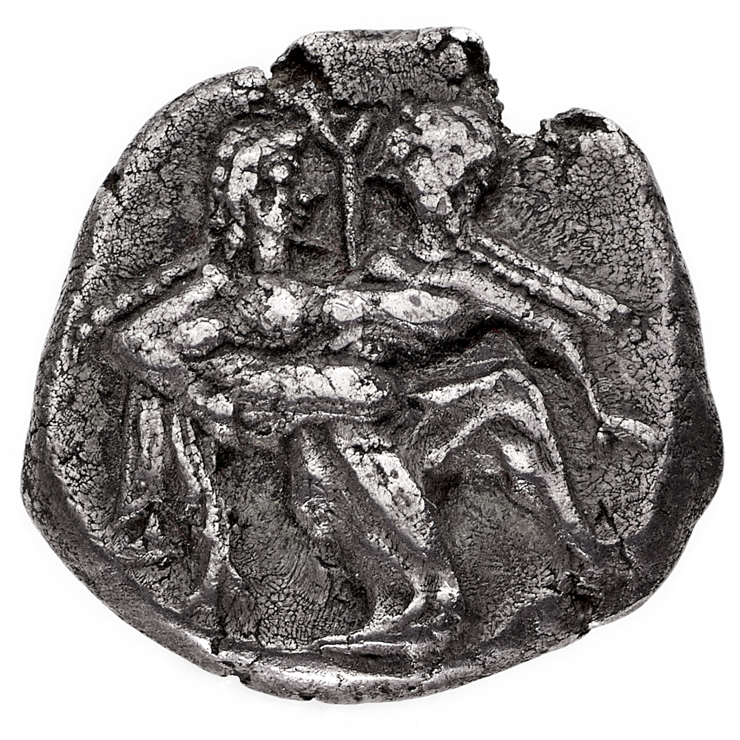 Thasos - Statere databile al periodo 510-490 a.C. - Diritto: satiro nudo sostiene con le braccia una ninfa - Rovescio: quadrato quadripartito in incuso - gr. 9,54 - Apprezzabile patina, migliore di BB - Proveniente dall'asta NAC L, Zurigo 18.5.2001, n. 1302