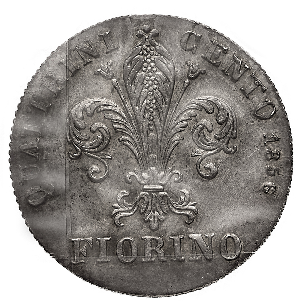 Leopoldo II di Lorena (1824-1859) - Fiorino 1856 - Zecca: Firenze - Diritto: effigie del Granduca a destra - Rovescio: giglio fiorentino - Sigillata ("FDC")