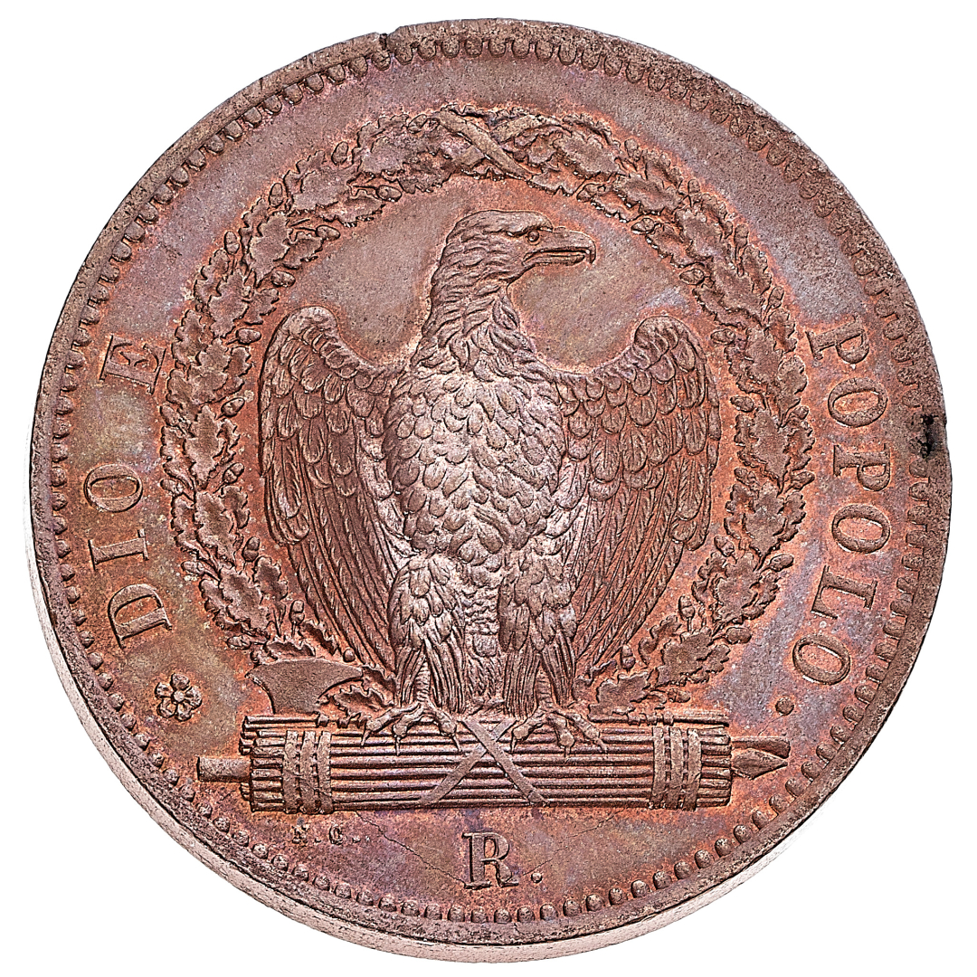 3 Baiocchi 1849 NGC MS 63 BN - Zecca: Roma - Diritto: valore su due righe entro legenda circolare - Rovescio: aquila ad ali spiegate su fascio entro corona di quercia - Rara in questa conservazione - Cert. #8586361-009
