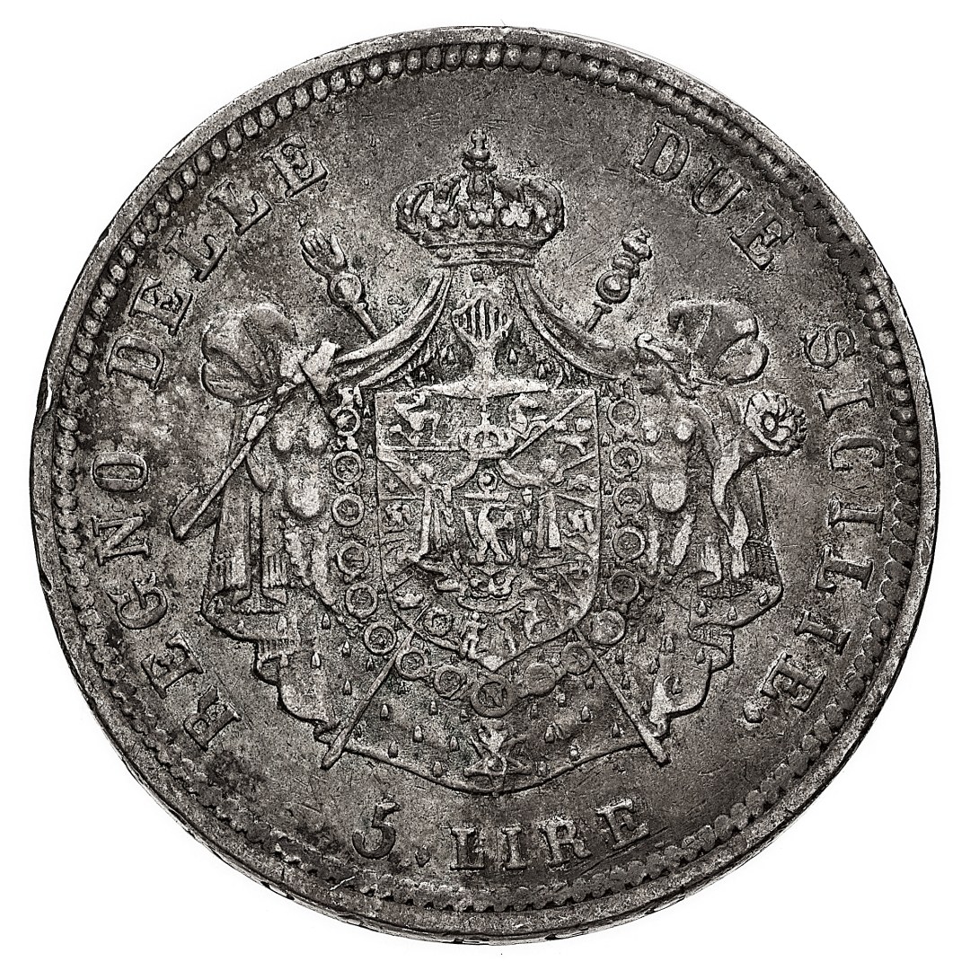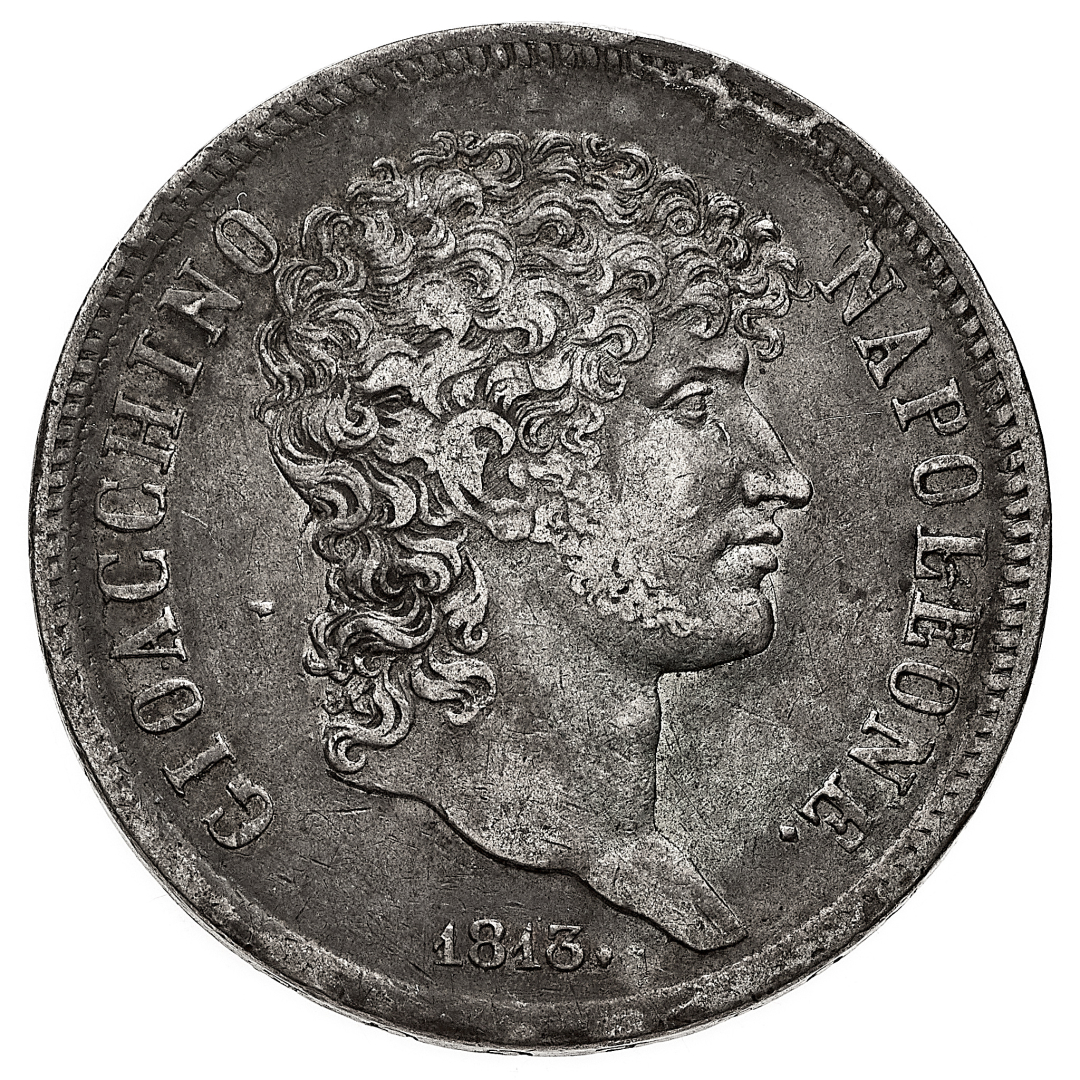 Gioacchino Murat (1808-1815) - 5 Lire 1813 - Zecca: Napoli - Diritto: effigie di Gioacchino a destra - Rovescio: stemma entro padiglione ornato e coronato - gr. 24,79 - BB
