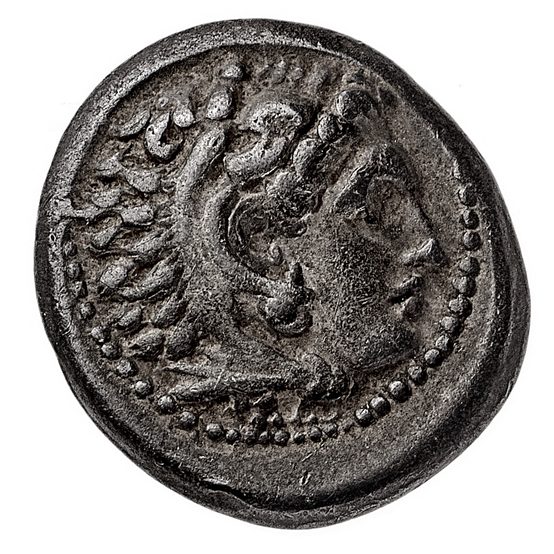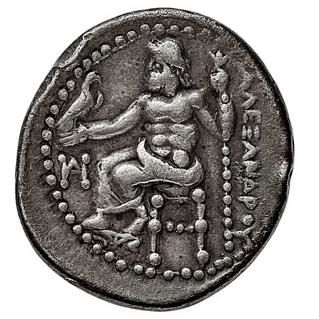 Alessandro III (336-323 a.C.) - Dracma databile agli anni 325-323 a.C. - Zecca: Mileto - Diritto: testa di Eracle a destra ricoperta dalle fauci del leone - Rovescio: Zeus seduto a sinistra su un trono tiene un'aquila con la mano destra e un lungo scettro verticale con la sinistra; nel campo un monogramma - gr. 4,24 - Patina di medagliere, migliore di BB